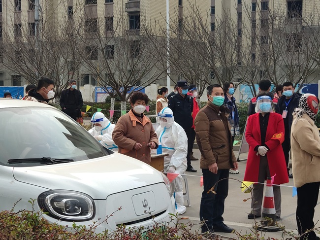 “居民朋友們,請?zhí)崆皽蕚浜媒】荡a、身份證,全程佩戴口罩,有序排隊,保持距離,等候檢測……”在核算測點可以看到,醫(yī)護“大白”、黨員志愿者等各司其職,有條不紊地開展各項工作。參加核酸檢測的居民在“小喇叭”的提醒和工作人員的引導(dǎo)下陸續(xù)進行檢測。排隊、測體溫、掃碼、進入檢測區(qū)域、依次進行人員登記、采樣……整個過程及時、高效、科學(xué)、有序。為確保核酸檢測做到應(yīng)檢盡檢,公司還聯(lián)合社區(qū)開展“敲門行動”,協(xié)助配合做好上門信息登記、政策宣傳等工作,用實際行動,擔當作為,為百姓筑牢了抗疫防線。