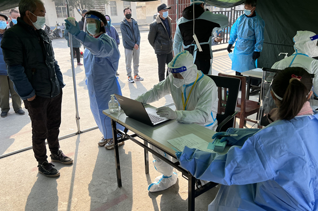 圖為黨員宋世園正引導居民做好核酸檢測準備工作