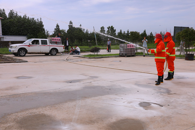 生命無演練,防患于未然。活動(dòng)開始,安全生產(chǎn)部工作人員一一講述了火災(zāi)種類、滅火器種類及使用方法,大家輪番上前,親手實(shí)踐了滅火器的使用方法。隨后,應(yīng)急分隊(duì)按照預(yù)案實(shí)地演練汽油機(jī)水泵滅火流程。