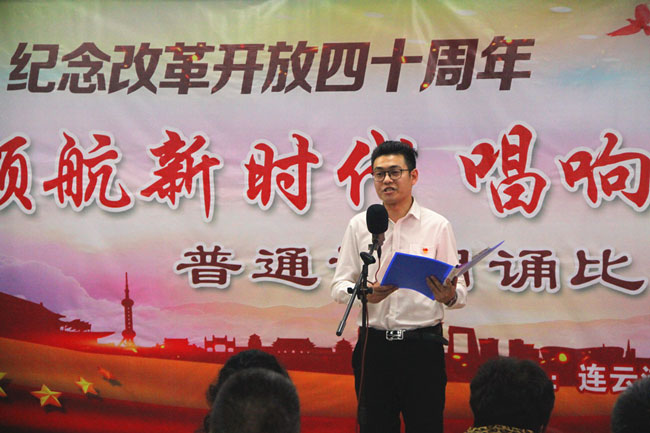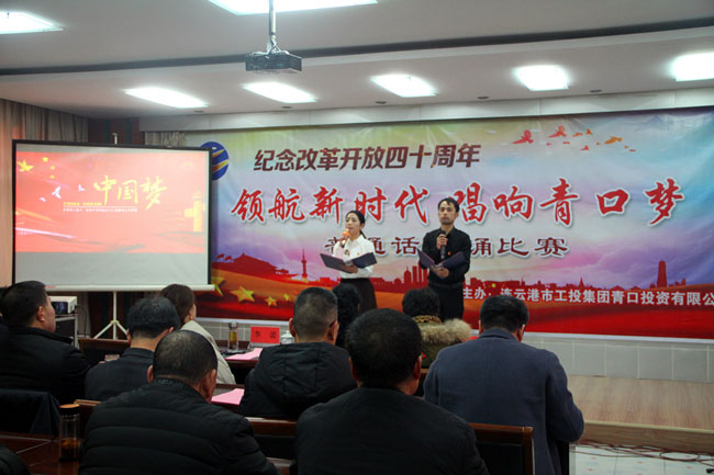 為了紀(jì)念改革開(kāi)放四十周年,引導(dǎo)和激勵(lì)廣大職工圍繞 “高質(zhì)發(fā)展、后發(fā)先至”主題主線,為建設(shè)“強(qiáng)富美高”新青口、開(kāi)啟青口發(fā)展新征程貢獻(xiàn)力量。12月11日下午,青口公司黨委隆重舉行“領(lǐng)航新時(shí)代 唱響青口夢(mèng)”紀(jì)念改革開(kāi)放40周年普通話朗誦比賽。活動(dòng)邀請(qǐng)到連云港市語(yǔ)委辦副主任、詩(shī)朗誦藝術(shù)家協(xié)會(huì)副主席朱衛(wèi)文,國(guó)家級(jí)普通話測(cè)試員、市朗誦藝術(shù)家協(xié)會(huì)副秘書(shū)長(zhǎng)李蕾、主任播音員、市朗誦藝術(shù)家協(xié)會(huì)副主席朱平擔(dān)任評(píng)委。公司領(lǐng)導(dǎo)班子 及 全體管理人員參加活動(dòng)