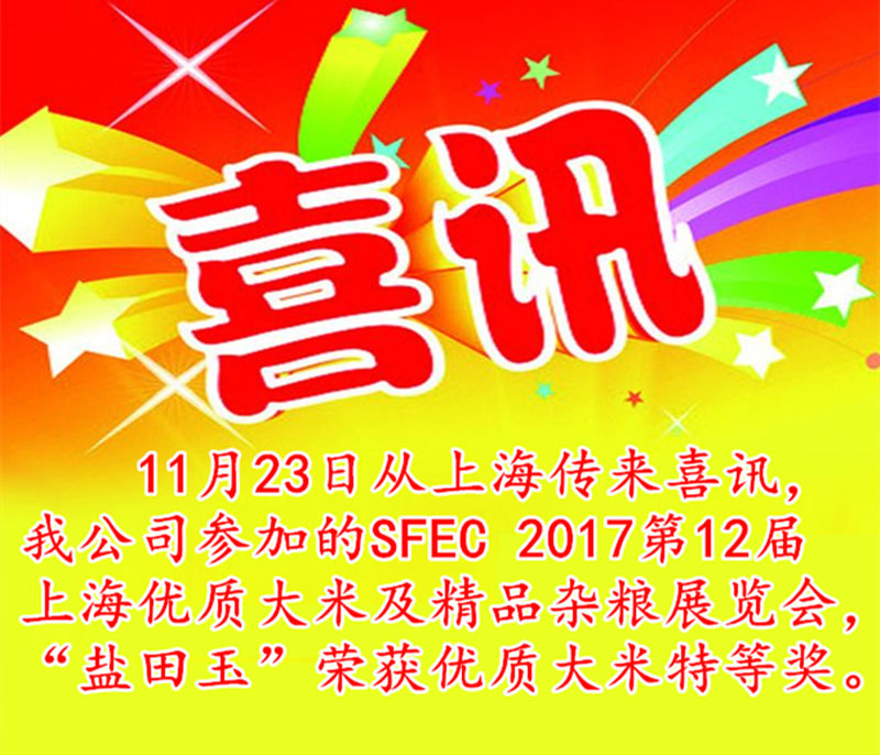 【喜訊】 “鹽田玉”大米再獲特等獎!