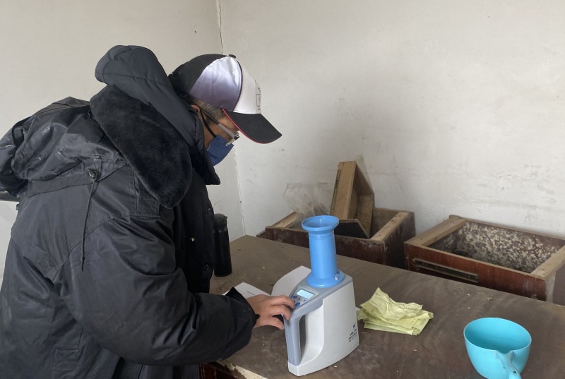 為確保糧食存儲(chǔ)安全和保障種植效益,大新農(nóng)場(chǎng)曬場(chǎng)測(cè)量人員深入曬場(chǎng)對(duì)種植戶糧食進(jìn)行跟蹤測(cè)水作業(yè),為糧食安全儲(chǔ)存打造堅(jiān)實(shí)屏障。(王璐)