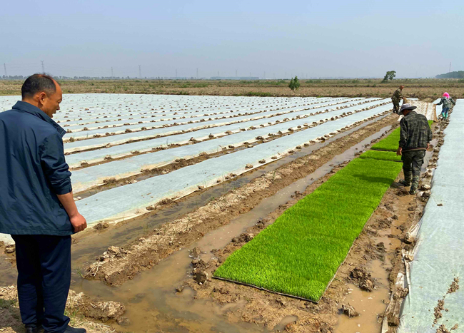 當(dāng)前水稻生產(chǎn)已全面進(jìn)入揭膜管理期,大新農(nóng)場把保苗護(hù)苗作為促進(jìn)穩(wěn)產(chǎn)增收的一件大事來抓,結(jié)合開展創(chuàng)先爭優(yōu)活動(dòng),管理人員進(jìn)入生產(chǎn)一線,督促條田管理工提前做好秧苗管理工作,為下一步插秧序時(shí)推進(jìn)打下堅(jiān)實(shí)基礎(chǔ)。(王 璐)
