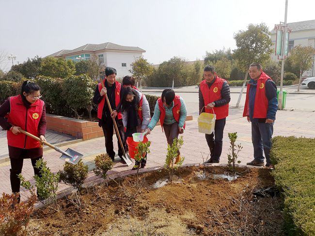 會(huì)后,服務(wù)中心與社區(qū)一行人身穿紅馬甲迅速投入到緊張的植樹活動(dòng)中,大家三五人一組,分工協(xié)作、配合默契,扶起樹苗、揮鍬鏟土、培實(shí)新土,齊心協(xié)力種下一株株樹苗,呈現(xiàn)出一派火熱的勞動(dòng)場景。