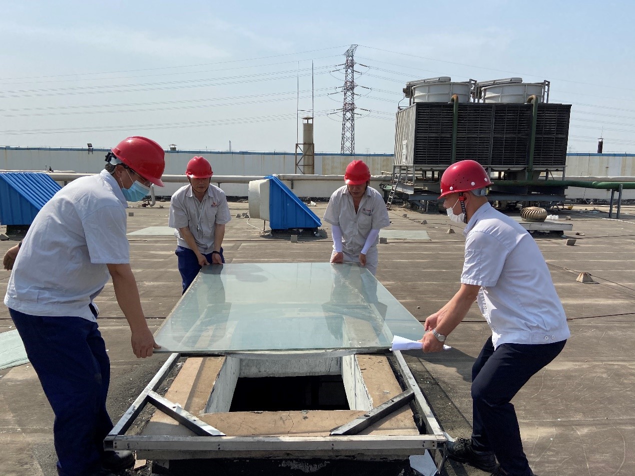 檢查過程中,總經(jīng)理韓立新發(fā)現(xiàn)部分天窗玻璃蓋板有破損,當(dāng)機(jī)立斷,頂著炎炎烈日,率先搬起備用玻璃蓋板,動(dòng)員安委會(huì)成員一起更換天窗玻璃蓋板,及時(shí)消除安全隱患,筑牢安全防線。艷陽下燙手的玻璃,燙著韓總等安委會(huì)成員的手,但溫暖著一線員工的心,切實(shí)感受到公司對(duì)員工生命安全重視。