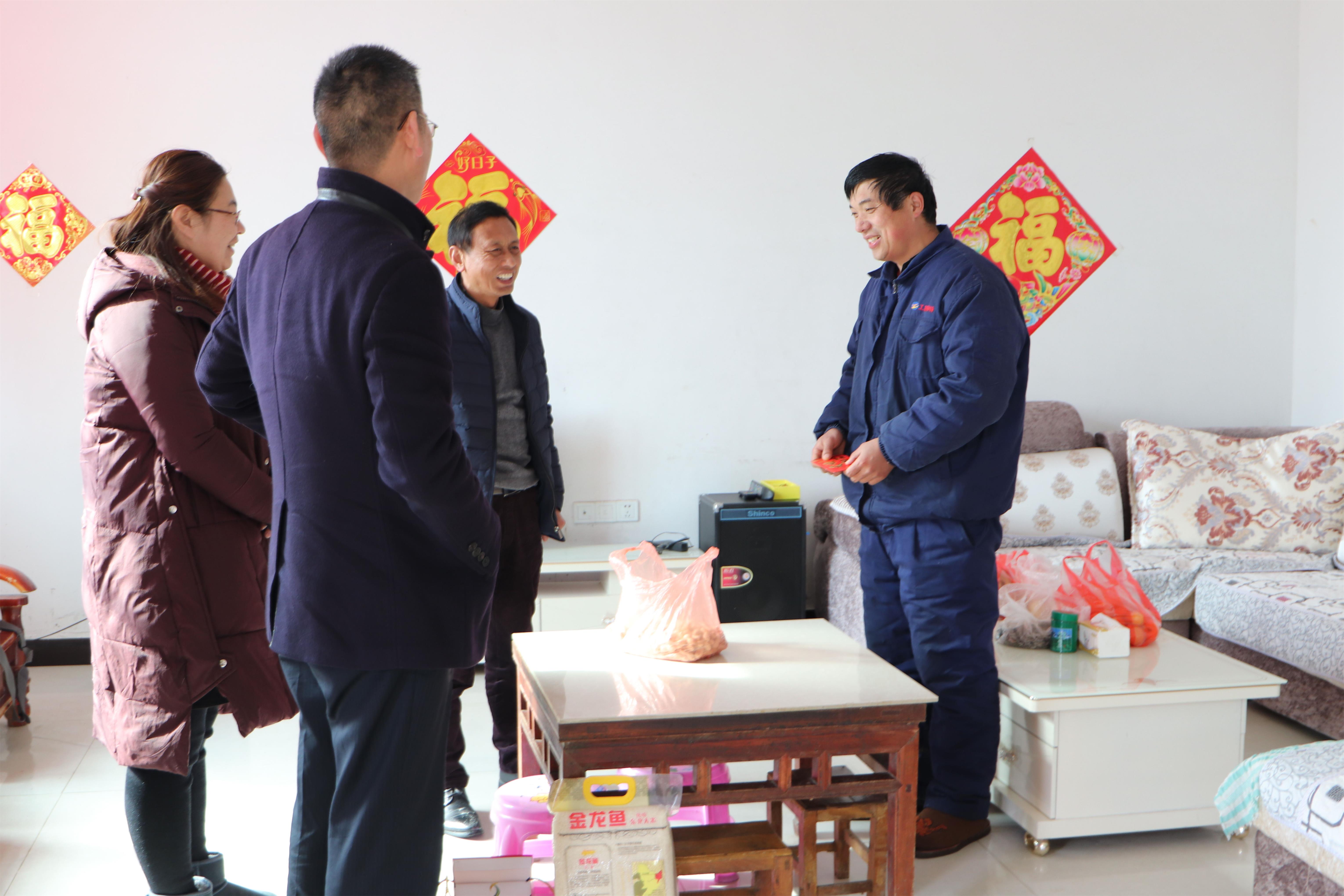 131日下午,公司黨支部書記鄒德兵、副總經(jīng)理王爽芳、工會主席袁忠一行走進困難職工孫英山等家中,為他們帶去節(jié)日的祝福和公司的關(guān)懷。