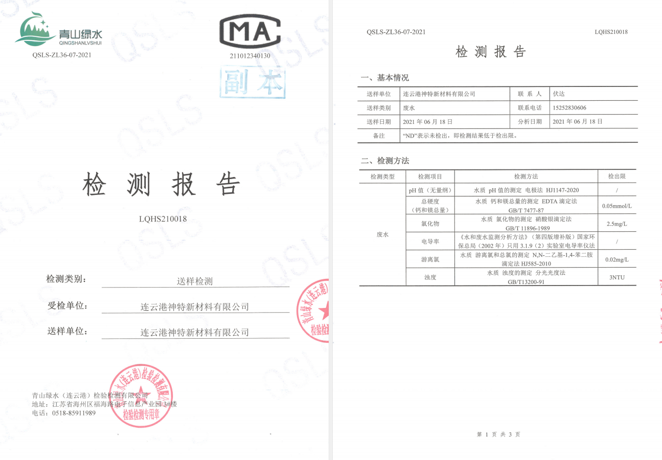神特公司檢測(cè)報(bào)告公示