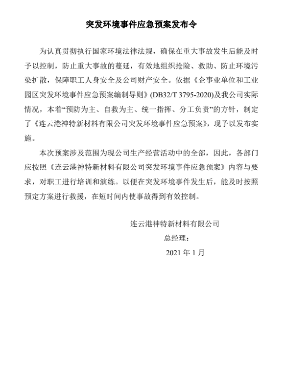 神特公司突發(fā)環(huán)境事件應(yīng)急預(yù)案