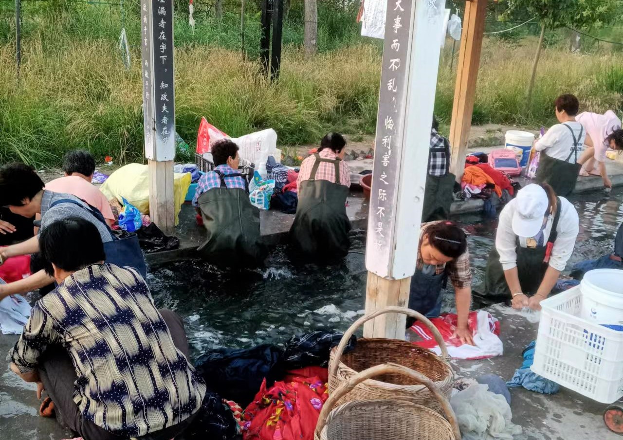 想到這些,我很好奇的查了查這個(gè)地方,原來洽川之前的洗衣溝渠被新規(guī)劃占用,他們重新選址建設(shè)了這個(gè)關(guān)雎洗衣文化長廊。通過打一眼溫水自噴井,用青石堆砌一條寬3米、長30余米的青石洗衣渠道,并且搭設(shè)了木結(jié)構(gòu)的文化長廊,來保護(hù)當(dāng)?shù)靥赜械南匆挛幕?span>
