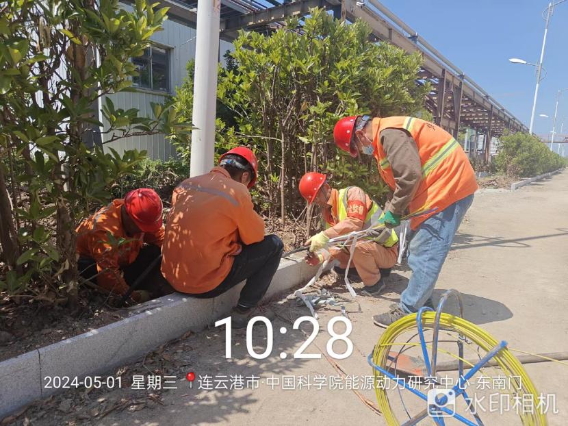 在中科院的路燈電纜施工現(xiàn)場(chǎng),2000來米的電纜穿管工程時(shí)間緊任務(wù)重!舊路燈基座電纜孔全被泥土堵塞,穿線相當(dāng)困難!在“老黃牛”喬以成帶領(lǐng)下,市政班組全員在崗,集思廣益克服困難。大家顧不上烈日當(dāng)頭、蚊蟲叮咬,合起號(hào)子加油干,確保兩天拿下全部工程量。
