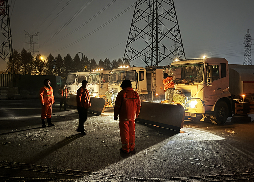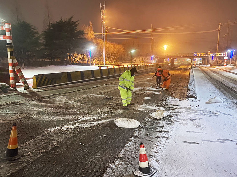 ? ? 環(huán)衛(wèi)分公司、盛達市政分公司晝夜奮戰(zhàn),清雪除冰,共出動人員160余人次,大型機械車輛6架,將轄區(qū)交叉路口、重要地段及橋面、立交坡路等處的冰雪全部清理干凈,確保過往車輛行人的交通安全。