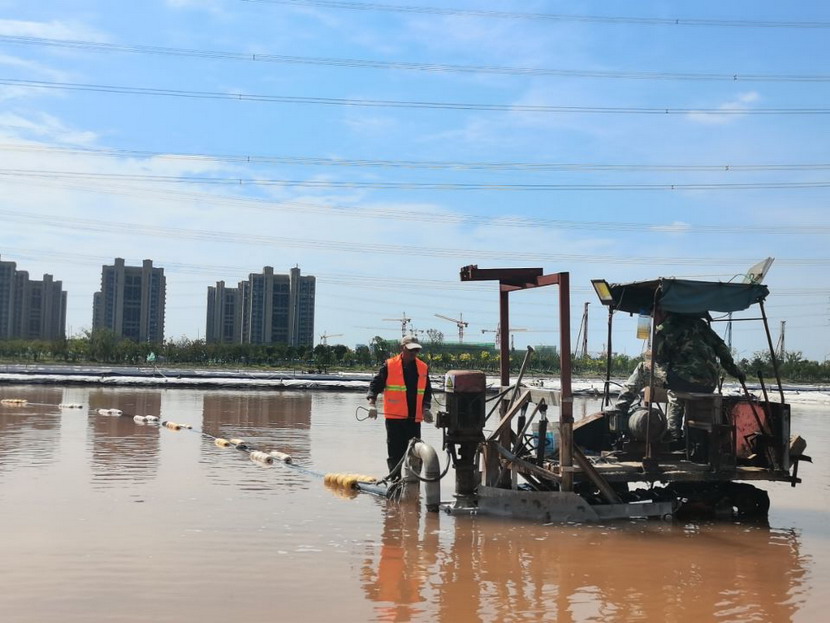 第一片180公畝的曬鹽池已經(jīng)收鹽完畢,工人師傅們嫻熟有序用塑布對(duì)鹽廩進(jìn)行覆蓋,預(yù)防雨水造成鹽斤淌化。
