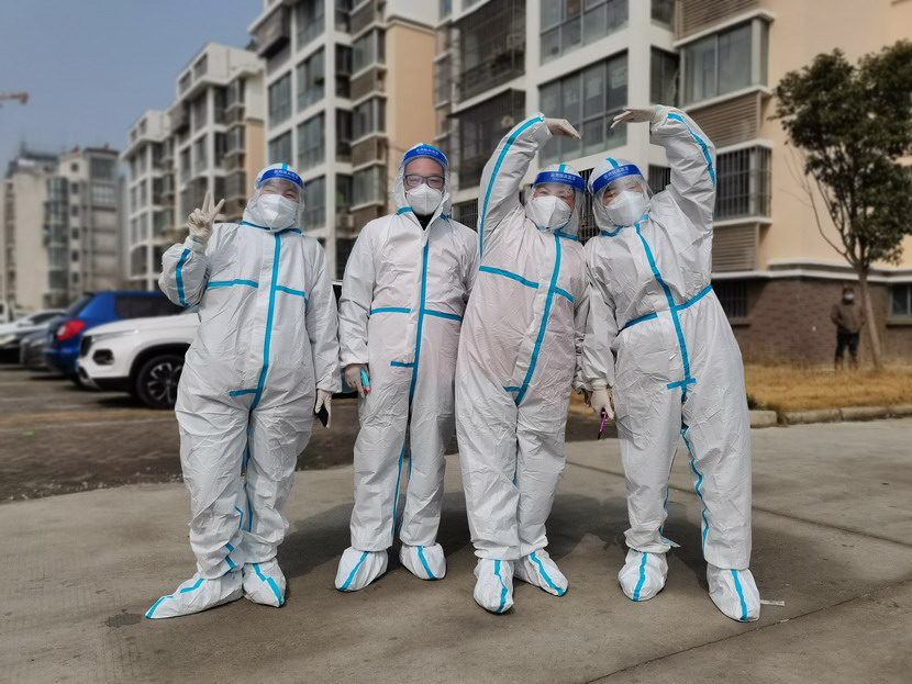 清晨6點30分,1號檢測點,李明同志在檢查物資,“大白”服裝4套、“小藍”服裝6套、棉簽600根……;2號檢測點,于洪亮在將物資上桌,病毒核酸檢測試管、棉簽、消毒液,“還缺少一瓶酒精,我立即反饋給社區(qū),請社區(qū)抓緊安排送來”;4號檢測點,蘇玲、秦黎明正在互相幫忙穿好防護服,“秦姐,這個防護面罩里外有兩層薄膜,我給你撕掉,這樣就不會有霧氣了”,“嗯嗯,你這個拉鏈得拉到頂,我們自己也一定要做好防護”秦黎明溫柔的說;5號檢測點,內(nèi)退黨員孫芳和姜海洋,互相在防護服后背寫上對方的名字,以便于更高效的完成檢測工作;6號檢測點,霍正鋼、朱文健、韓永剛、邱榮濱正在清點檢測小卡片;7號檢測點,張強在拿著酒精給廢物處置垃圾箱消毒;8號檢測點,新加入的孫銀、占恒春、尹永明、韓永光、趙紹慶正在給消殺噴霧劑灌裝84消毒液,社區(qū)8個檢測點的消殺工作全部由昌圩臨時黨支部志愿者負責。