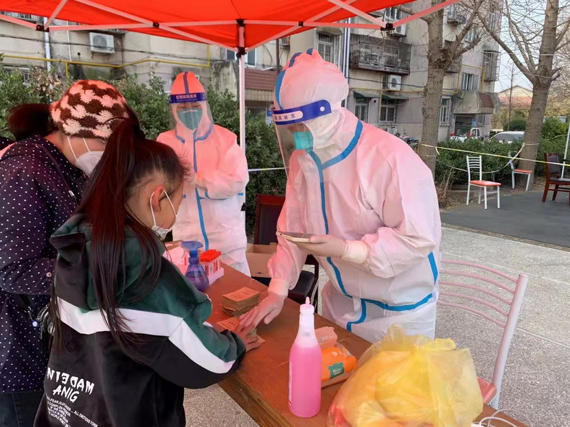 然而隨著疫情越發(fā)嚴(yán)重,小區(qū)核酸檢測員人手又緊張了起來,“我可以,這幾天我都學(xué)會(huì)了,最基本的我都會(huì)”秦英又是第一個(gè)舉手到最前線。這下她更忙了,每天凌晨三點(diǎn)起床做飯,五點(diǎn)社區(qū)報(bào)到,一直堅(jiān)守到晚上八點(diǎn)。為了節(jié)省防護(hù)服,她一般都要等到中午2點(diǎn)多鐘才休息吃飯,這股毅力讓社區(qū)、街道領(lǐng)導(dǎo)看在眼里,服在心上,連一直牢騷怪話的幾個(gè)群眾也為她由衷地豎起大拇指。