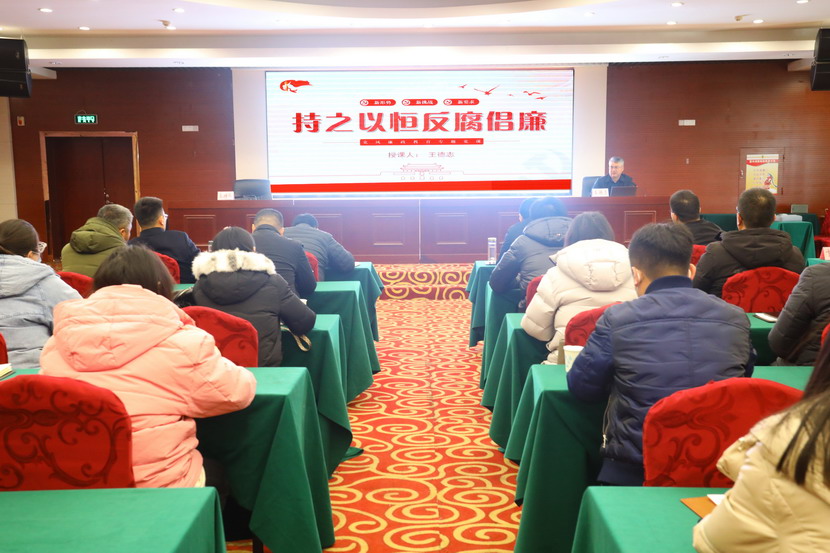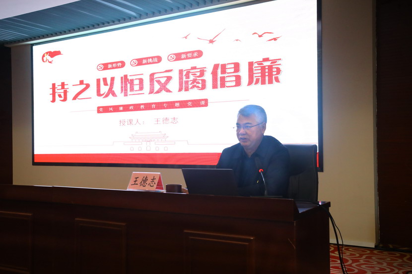 隨后,公司黨委書記、董事長、總經(jīng)理王德志給大家作題為“持之以恒反腐倡廉”的廉政黨課,從當(dāng)前階段反腐倡廉新形勢、經(jīng)濟(jì)發(fā)展與廉政建設(shè)關(guān)系、企業(yè)反腐工作面臨新挑戰(zhàn)、全面落實(shí)從嚴(yán)治黨總要求四個方面闡述要加強(qiáng)反腐倡廉工作,促進(jìn)黨風(fēng)廉政建設(shè)。