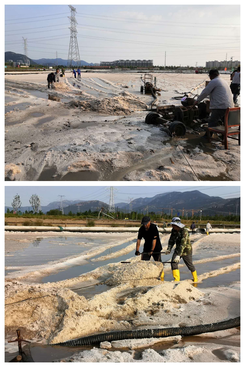 “大架在向后移動45公分,鹽鎊、鹵鎊與管頭螺絲擰緊沒有?觸電保安器試跳一下”…….扒鹽現(xiàn)場忙碌而有序,扒鹽人員對開機前準備工作再一次檢查確認。15:56分鞭炮齊鳴、禮花滿天,“秋扒”正式開啟。本次扒鹽采用人工與機械相結合的工作方法,根據(jù)鹽層的厚薄程度決定扒鹽的方式。此次扒鹽生產(chǎn)周期長、工作量大,工區(qū)認真組織、精心安排,制定了詳細、”人性化”的管理人員跟班督查值班表(男同志夜班女同志白班)。要求跟班人員,務必將“安全、質(zhì)量”兩大主題貫穿整個秋扒工作的各環(huán)節(jié),每天深入扒鹽點開展全面綜合性的定點檢查,重點圍繞“工藝執(zhí)行、安全防范、護具穿戴”等,職工容易產(chǎn)生思想麻痹的細節(jié)工作,嚴明紀律,杜絕違章作業(yè)。搶時間爭速度,確保“秋扒”高效有序完成。