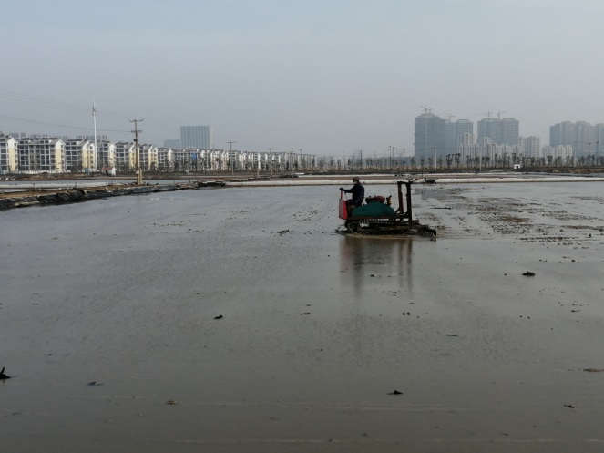 ? ? ? ?近日,大浦工區(qū)為了鬧增產(chǎn),想方設(shè)法增加產(chǎn)鹽面積,將10塊鹵臺(tái)600公畝改造為結(jié)晶池,針對(duì)鹵臺(tái)中的淤泥,采取和耙壓實(shí)處理池板。