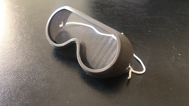 2177時(shí),第一件3D打印護(hù)目鏡樣品制作完成經(jīng)過調(diào)整鏡架大小安裝高度、松緊帶彈力、實(shí)現(xiàn)護(hù)目鏡與口罩的配合等,完成定型設(shè)計(jì),并可根據(jù)使用者面部大小個(gè)性化定制。