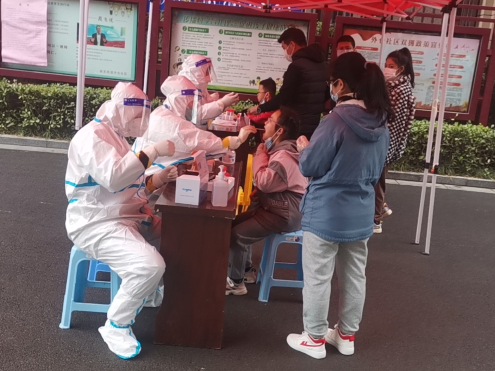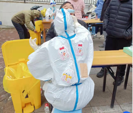 ? ? 12日? 7點(diǎn)集合,領(lǐng)裝備,鑒于昨天的教訓(xùn),早上沒喝水,吃了兩口飯,要不大白服就浪費(fèi)了。出了點(diǎn)意外,排小區(qū)把我們小區(qū)給忘了,沒醫(yī)生來支援,就三個(gè)醫(yī)生,三個(gè)點(diǎn),三張臺(tái),隊(duì)伍排的那叫一個(gè)長(zhǎng)。“請(qǐng)大家把健康碼打開,保持一米距離,戴好口罩!”這是我上午說的最多的幾句話。咱們贛榆的醫(yī)生非常辛苦,累了一上午,下午還要采黃碼,掃樓,向他們致敬!中午剛領(lǐng)盒飯就通知徐州支援的醫(yī)生到了,來了十幾個(gè),扒拉兩口飯,開始穿裝備。第七輪結(jié)束,感覺人都廢了,渾身濕透,嗓子疼,不想動(dòng)!