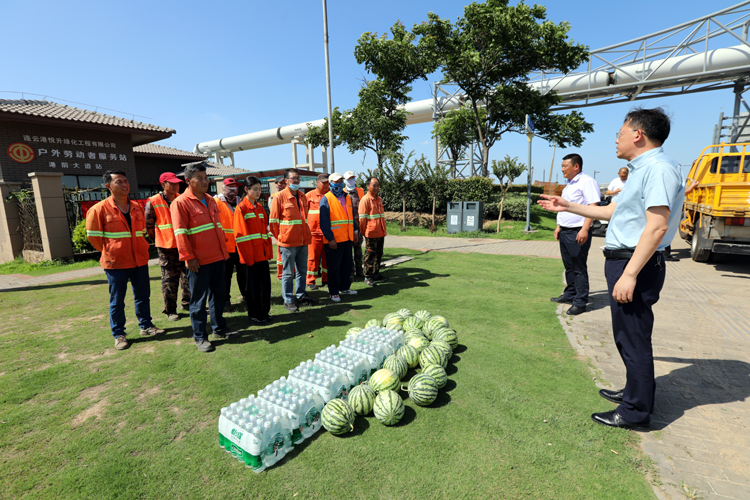 75日下午,投資公司黨委副書(shū)記、工會(huì)主席劉剛深入一線看望慰問(wèn)高溫作業(yè)職工,為他們送去礦泉水、西瓜等防暑降溫物品,囑咐他們調(diào)節(jié)好高溫作業(yè)時(shí)間,用好防暑降溫藥品包,確保高溫作業(yè)安全。