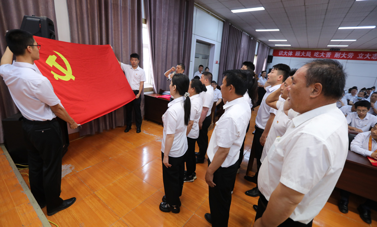 ? ? ? 會上,預(yù)備黨員舉行了入黨宣傳儀式;對2022--2023年度優(yōu)秀黨務(wù)工作者、優(yōu)秀共產(chǎn)黨員進行了表彰;對2023年“大干二季度、沖刺雙過半”立功競賽中特別獎、先進集體、先進班組和先進個人進行了表彰。(徐宣 徐工)