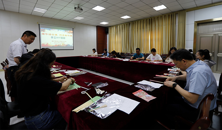 端午話安康,巧手制竹扇。走進(jìn)機(jī)關(guān)中型會(huì)議室,工作人員向大家介紹了竹扇的編制方法。隨后,大家挑選了自己喜歡的樣式和顏色,按照制作要求“挑一壓二、挑二壓二”的方法將竹條編織固定,并融入了自己的想法和創(chuàng)意進(jìn)行編織,經(jīng)過一個(gè)多小時(shí)的努力,一根根竹條在大家的巧手下變成了一把把精致的扇子。
