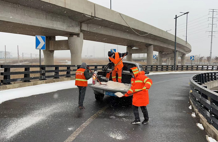 掃雪除冰工作刻不容緩。按照悅升公司掃雪除冰工作任務(wù)分配,環(huán)衛(wèi)分公司負(fù)責(zé)228徐新路到環(huán)保大道路段掃雪除冰任務(wù)。該區(qū)域內(nèi)因含有張圩互通大橋,光橋梁匝道、輔道就有8條,上下路段非常陡滑,給掃雪除冰工作帶來(lái)極大挑戰(zhàn)。但該公司人員堅(jiān)決認(rèn)領(lǐng)任務(wù),沒(méi)有任何退縮。他們采取車輛緩慢行駛方式,橋梁陡峭路段就使用人工用鐵锨一锨一锨端灑的方式進(jìn)行。雖然寒風(fēng)雪天中,不停的作業(yè)使胳膊潑灑的極其酸累,但大家不辭辛苦,沒(méi)有一絲怨言,全體人員全部值守在崗,奮戰(zhàn)在掃雪除兵工作第一線,僅24日一天,就潑灑融雪劑7車近30噸,為打贏掃雪除冰功堅(jiān)戰(zhàn)打好堅(jiān)實(shí)基礎(chǔ)。(晁華)