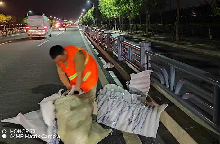為及時(shí)有效排除道路突發(fā)障礙,保潔勇士無所畏懼,勇于擔(dān)當(dāng),第一時(shí)間趕赴道路車輛拋灑事發(fā)地段,用實(shí)干精神彰顯鹽場(chǎng)人愛崗敬業(yè)高尚風(fēng)采。