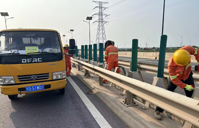 9月11日下午,市政分公司開展橋梁中分帶缺損防眩板專項維修行動,工作人員加班加點,攜手奮戰(zhàn),完成維修任務(wù),排除安全隱患,保障過往車輛行駛安全。